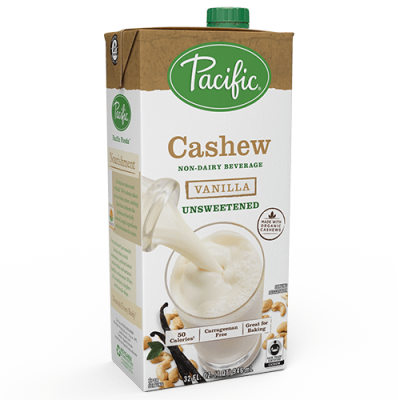Plant-based beverages made from cashews have a smooth texture that makes it ideal for a variety of different dishes: Its light creaminess and mild flavor work well in both sweet and savory applications. Pacific Foods’ version uses Fair Trade Certified cashews, ensuring that the ingredient is sourced responsibly. Its Unsweetened Cashew Vanilla makes a flavorful banana bread, and its Unsweetened Cashew Original beverage can be used a base for a hearty pasta sauce with nutritional yeast.